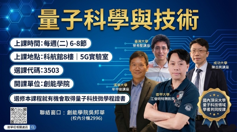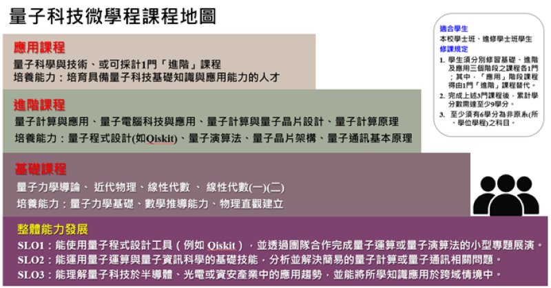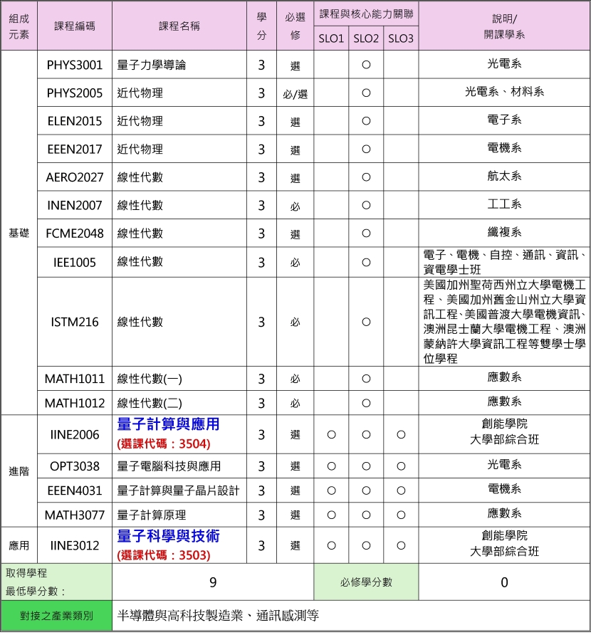 - 未列入本微學程課程規劃表內之科目,學生得持課程內容證明申請採計學分,經「量子科技微學程工作小組」審議通過後,採認為本微學程之科目學分。